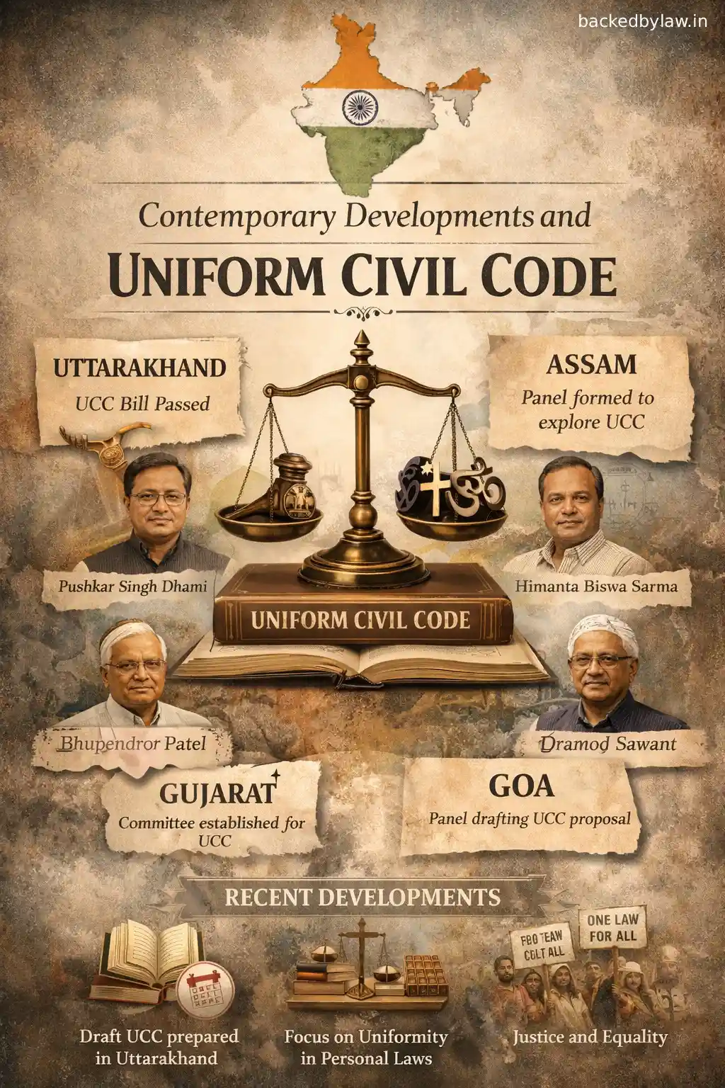 In 2026, the UCC is no longer a theoretical debate; it is a legislative reality. The implementation of the Uttarakhand Uniform Civil Code in 2024/2025 marked a watershed moment, making it the first Indian state to adopt a modern UCC (Goa follows a 19th-century Portuguese Civil Code).